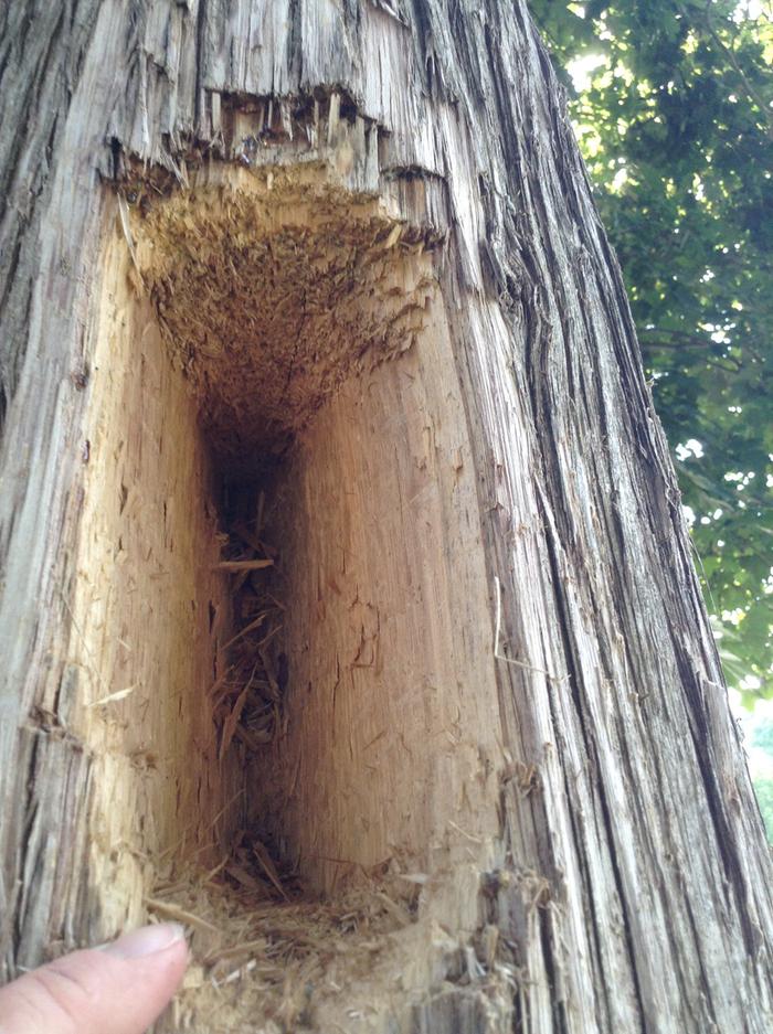Pileated Woodpecker Damage : Pileated woodpecker description, behavior, feeding, reproduction, pileated woodpecker threats pileated woodpecker description.. A pileated woodpecker (really big north american woodpecker) will work on a nest cavity over a number of small damage may occur when some woodpeckers make nesting holes in living trees. The pileated woodpecker (dryocopus pileatus) is a large, mostly black woodpecker native to north america. Have to have several of post replaced. Woodpecker damage is a big problem for commercial and public buildings too. The pileated woodpecker is the largest woodpecker found in most of north america.
